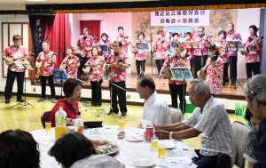 徳之島三線愛好会結の懇親会 Posted on 2019年3月15日 by katuhiro 12日に三線愛好会結の懇親会、顔合わせ会わおこなった。4クラスある愛好会員の顔合わせです。 今年度末に転勤する人もいて、だが異動発表も確実でないので~だろう送別会も兼ねての懇親会。 でしたが、ジャガイモ収穫や多忙な時期のため6割の人が出席でした。 今年は発足5周年という節目の年です。更に慰問活動や島の民謡に積極的に取り組みます。 これまでの練習曲の成果を発表しました。飛び入りで田中さん、カンツォーネ歌手も参加。