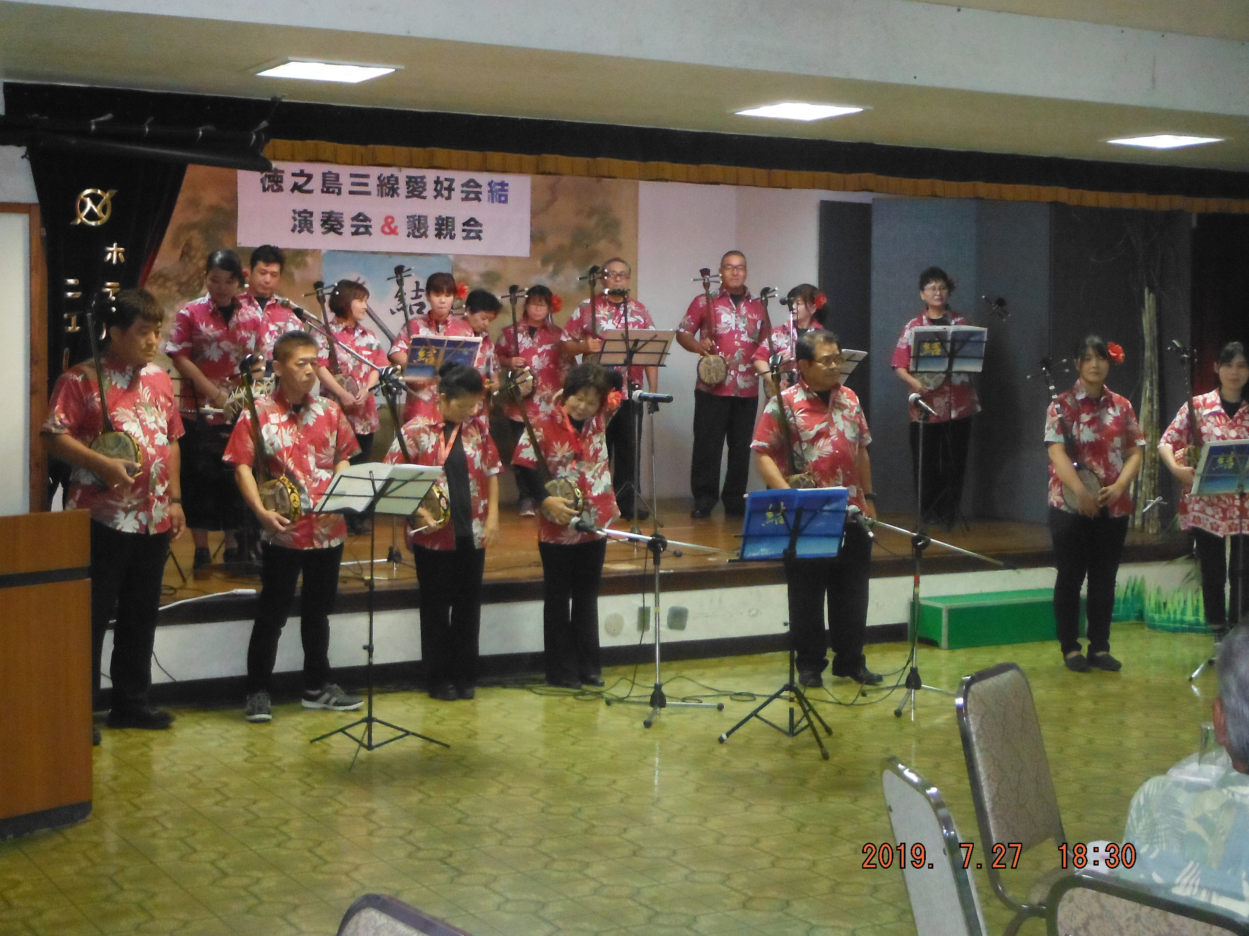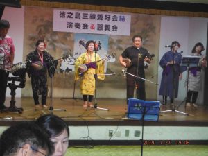 三線愛好会結 5周年記念コンサートのご案内 Posted on 2019年7月2日 by katuhiro 早いもので5年が過ぎました。大衆文化としての島唄を研究しつつ、愛好者を募って きました。県外や島外に転出された方々含め7~80名が愛好会の門をくぐっています。 カラオケ文化同様、島唄も永遠に口ずさめるように努力していく所存です。