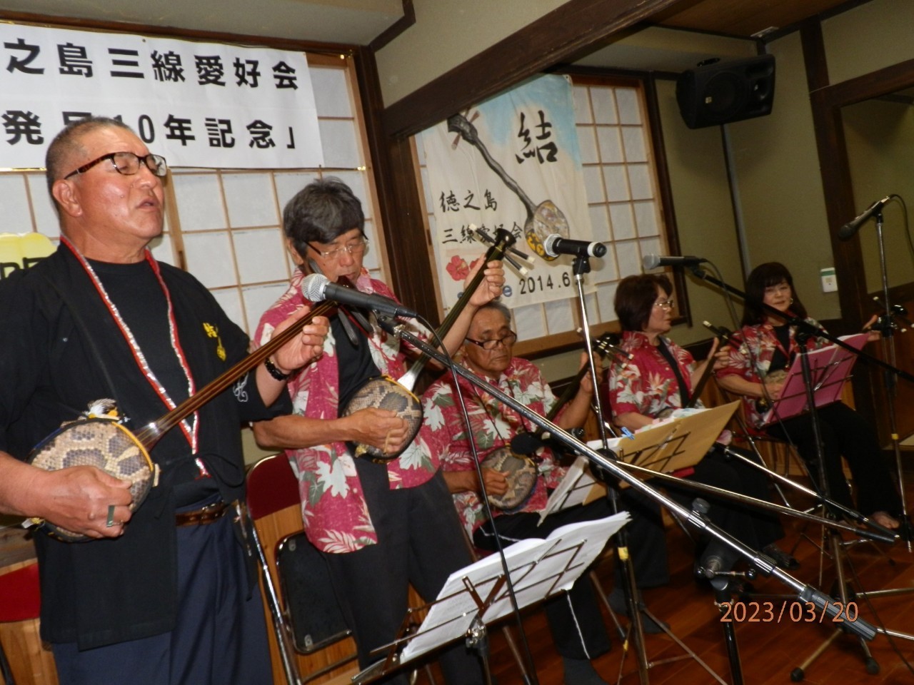三味線愛好会発足10年記念 Posted on 2023年3月23日 by katuhiro 3月19日 日曜日 コロナ禍の3年から終息へ。願いを込めて発足10年記念ライブを今年も豊作で実施した。観客は家族のみで副町長を来賓に迎えて35名ほど 27曲を披露 盛会でした。