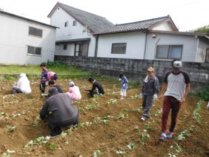 北区ふれあい農園 芋植え・落花生植え Posted on 2019年7月29日 by katuhiro 延び延びになっていました芋植え・落花生植えを昨日午後4時から実施しました・ 芋植えの体験、落花生の体験から「食物」がどのようにして植えられ育つのかを学習しました。幸いにも昨夜は雨が降り(慈雨)、よかっです。これからの管理(干ばつ時の給水・除草など)も大事ですね。