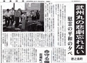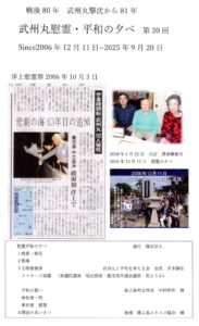 2006年12月11日戦跡巡りの中に 武州丸慰霊平和の夕べを実施。故 名城秀時さん政野富雄さん遺族から当時の事を知った。